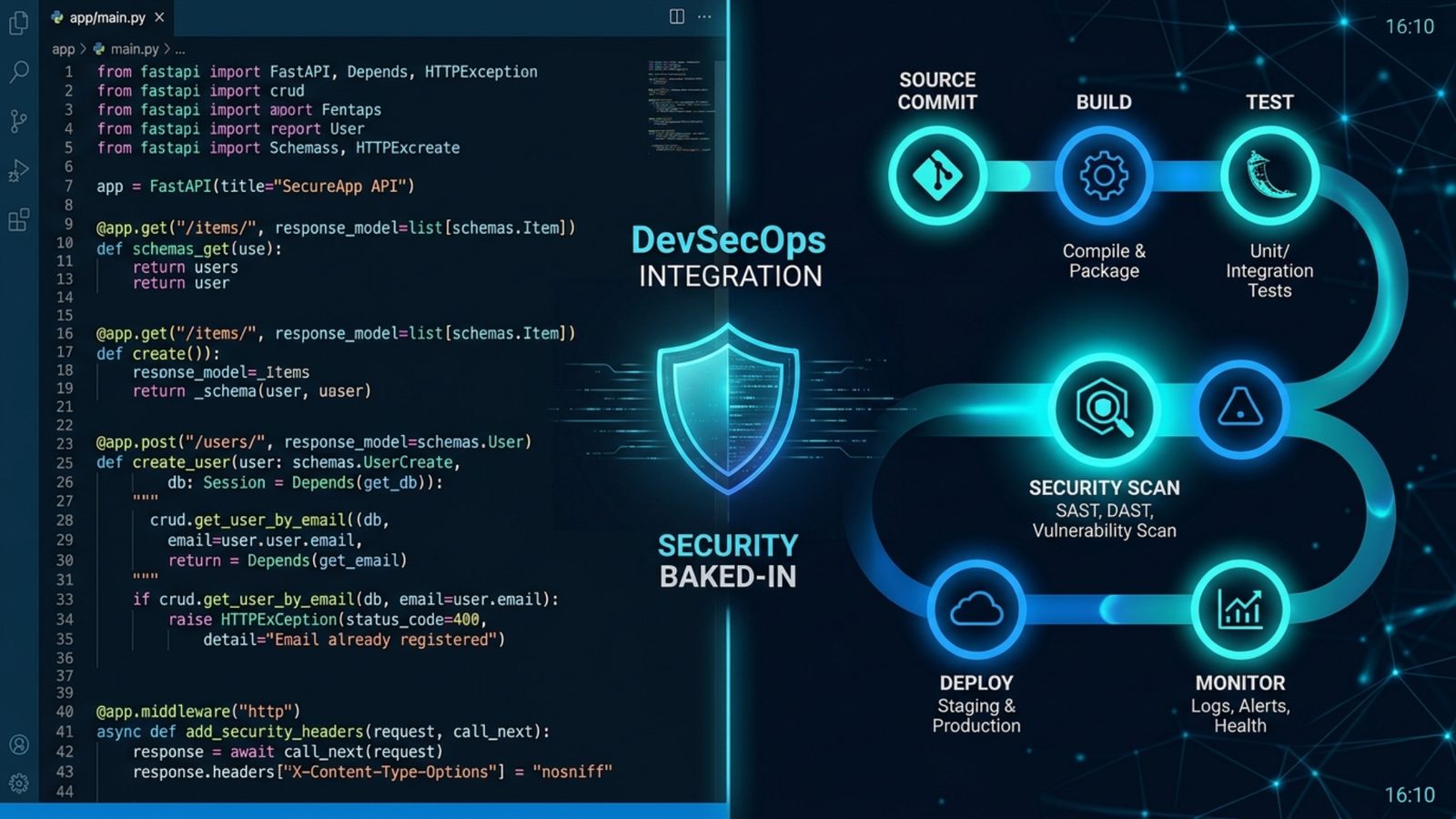 Static and dynamic application security testing integrated into the pipeline.